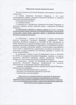 Памятка об оформлении наличия гражданства Российской Федерации детям